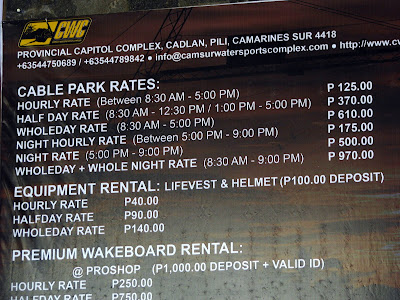 The wakeboarding rates are printed on a board (shown above) at the registration area. For an hour of wakeboarding, you would need to spend a total of P265: 1 hour (P125) wakeboarding fee, 1 hour (P40) equipment rental, and P100 deposit which will be given back after returning the rented equipment. The night rate is P50 more expensive but you get a discount when you avail of the halfday or wholeday rate.